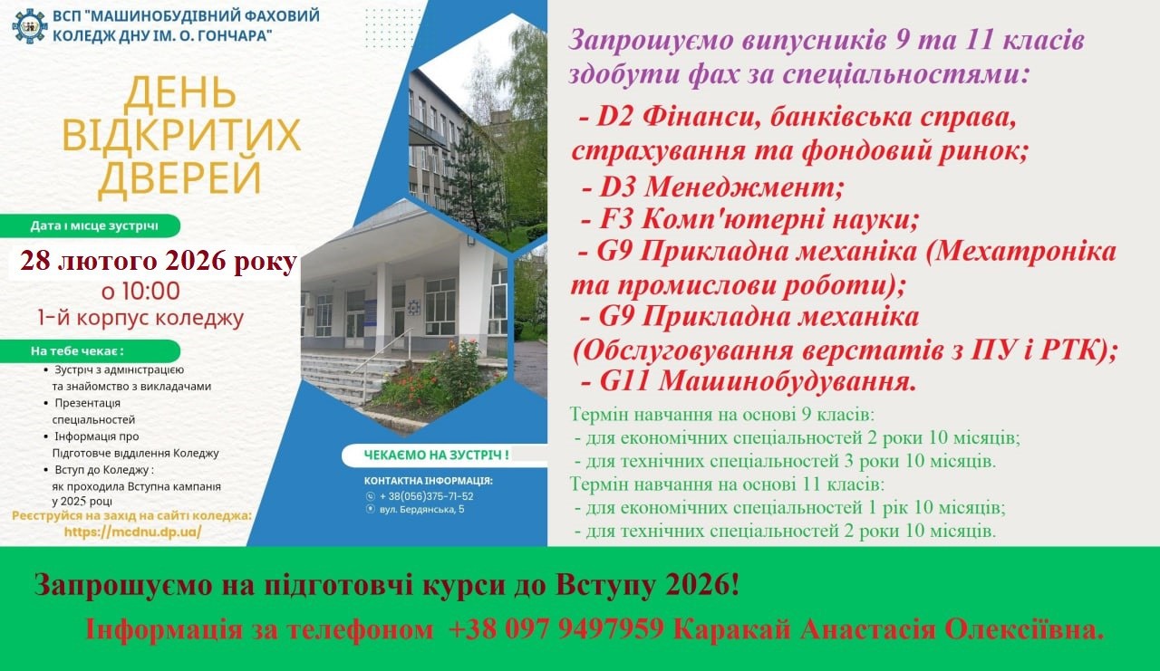 Підготовче відділення запрошує на курси з математкики та української мови.