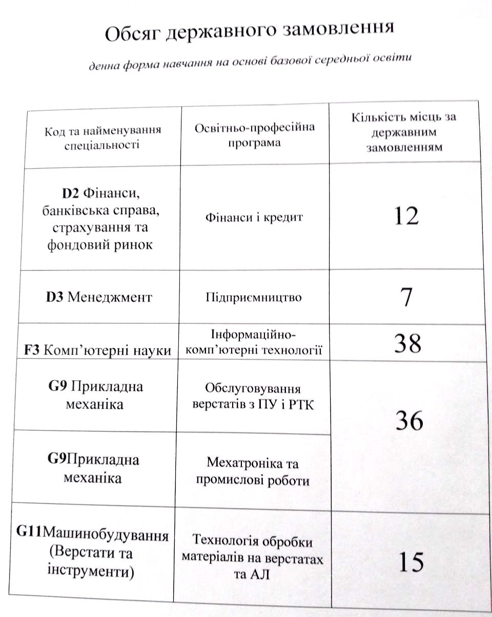 Список рекомендованих на основі БСО (9 класів) за кошти державного або регіонального замовлення: Переглянути списки